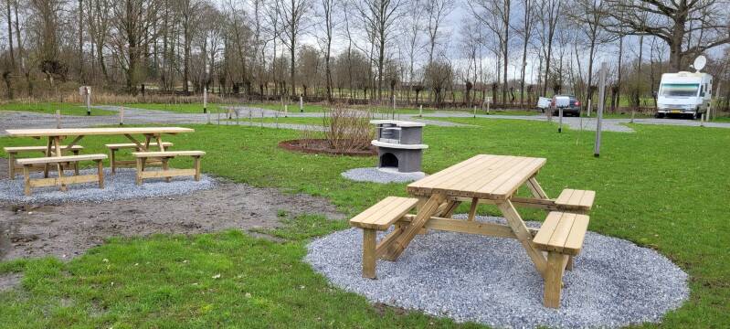 Nieuw op onze camperplaats zijn de 2 picknicktafels en een barbecue. Hopelijk gaan ze deze komende zomer veel gebruikt worden!