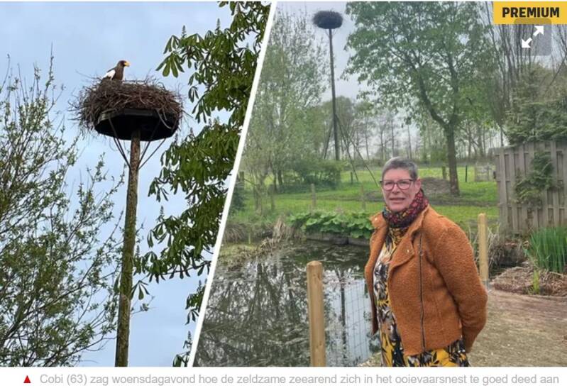 Op 26 april 2023 kwam er een Sterre zeearend op onze ooievaarsnest die zich tegoed deed aan de eieren. De ooievaars vlogen rond onder luid protest. De Sterre zeearend bleek te zijn ontsnapt uit een dierentuin in België. Hij was al op diverse plekken in onze omgeving gesignaleerd.